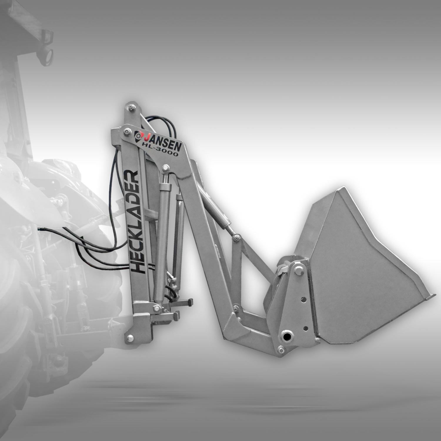 Vår Jansen HL-3000 baklastare passar ett standard trepunktsdrag bak (Kat. I och uppåt). Alla monterade hydraulcylindrar är dubbelverkande. Det krävs motsvarande anslutningar (2x dubbelverkande) på din traktor. Slangarna ingår i leveransen.