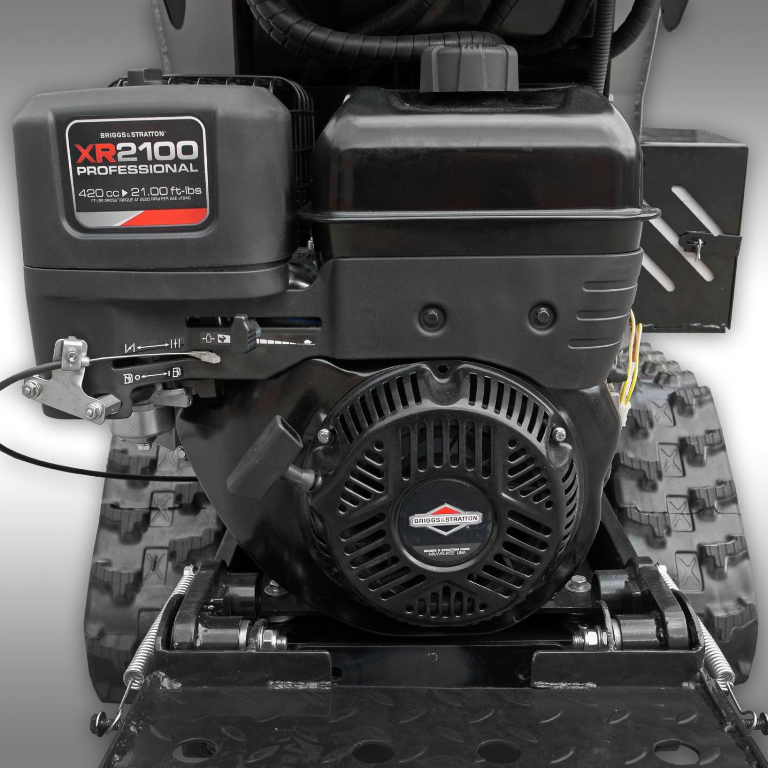 Bensinmotorn på 13,5 hk från Briggs & Stratton startar mycket bra (även vid låga temperaturer) och kan startas med via elstart. Den unika designen med den stabila förarplattformen gör att föraren kan åka bekvämt. När plattformen inte används kan den också fällas ihop. Hanteringen är särskilt enkel och bekväm.