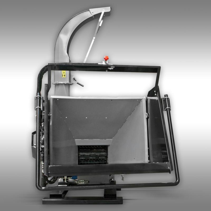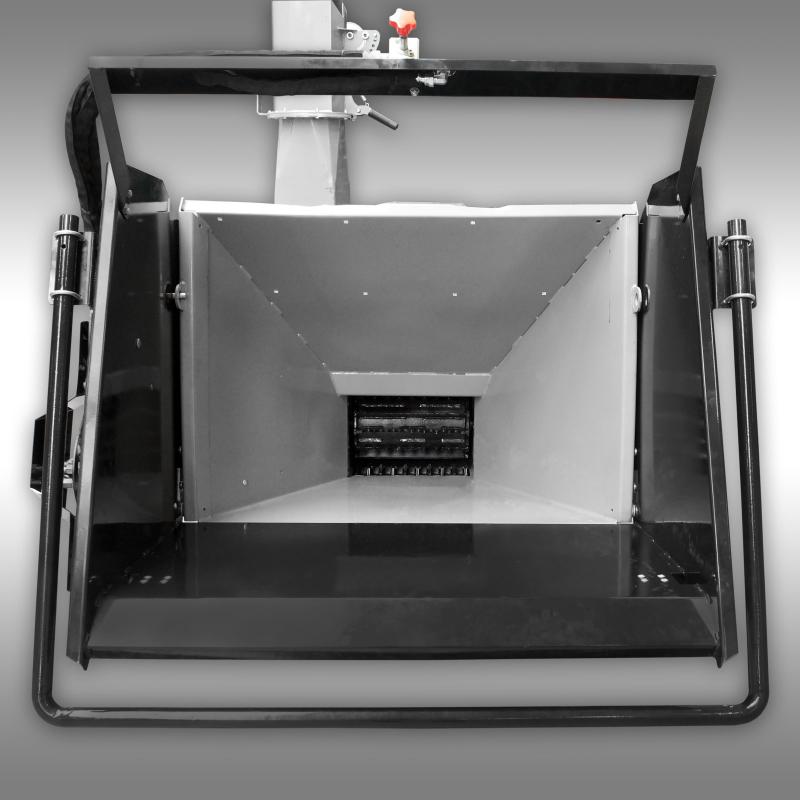 Tratten har en öppning upptill på 114x75 cm; i det nedre området framför rullarna mäter öppningen 39x26 cm. Färskt trä upp till en diameter på ca 18–20 cm kan hackas. Många konkurrenter ger den maximala hackade materialdiametern lika med måtten på den nedre påfyllningsöppningen, men denna specifikation är orealistisk och kan utlösa säkerhetsmekanismen i kraftöverföringsaxeln.