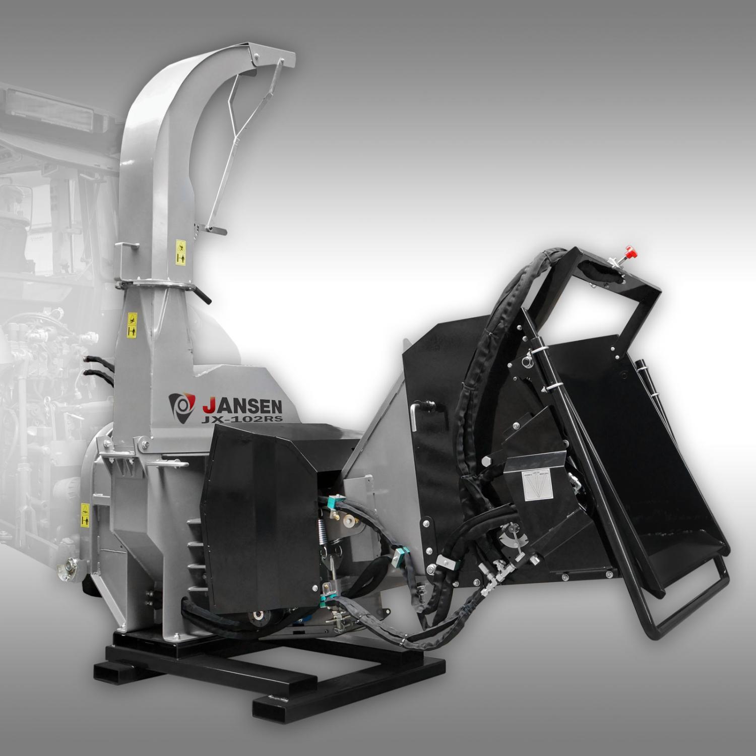 Flishuggen JX-102RS är ny i vårt flistugg-sortiment. Tack vare dess hydrauliska inmatning är det inte längre nödvändigt att driva och pressa etc.; de två matningsrullarna gör det åt dig. Matningsvalsarnas hastighet kan justeras kontinuerligt med reglerventilen. Detta är viktigt för att justera inloppshastigheten till diametern på det materialet. Mindre diametrar kan dras in snabbare än större diametrar.