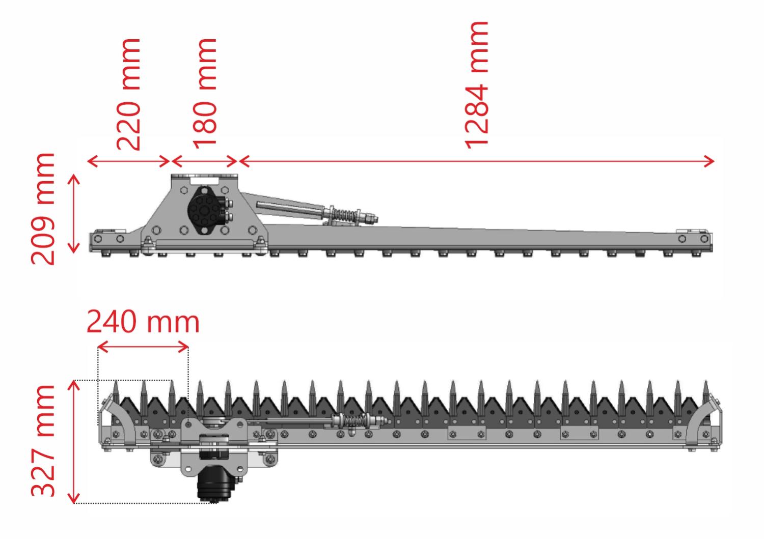 Arbetsbredd häcksax: ca 180 cm
