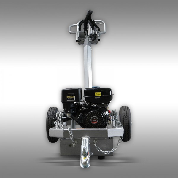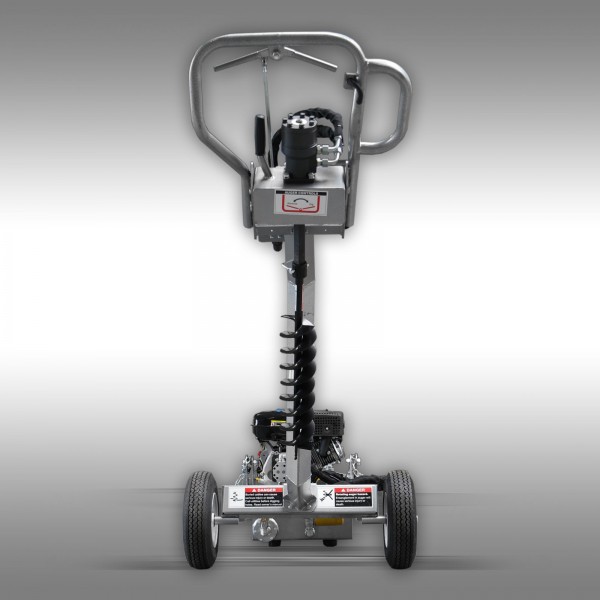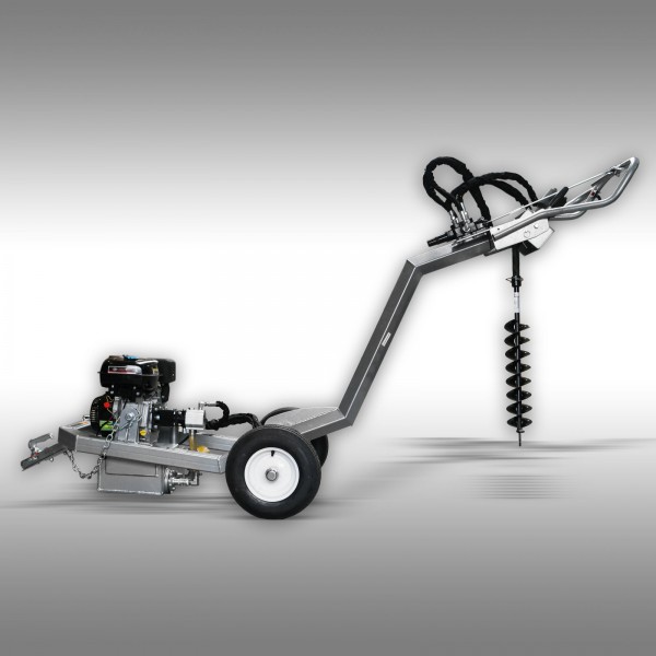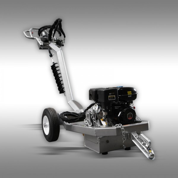 Tack vare draganordningen kan jordborrmaskinen enkelt kopplas till kuldraget på en personbil, traktor etc. och transporteras till användningsplatsen. I leveransen ingår också ett set med 5 borrar (300, 250, 200, 150 och 125 mm). Med alla borrar kan man borra ca 100 cm djupt.