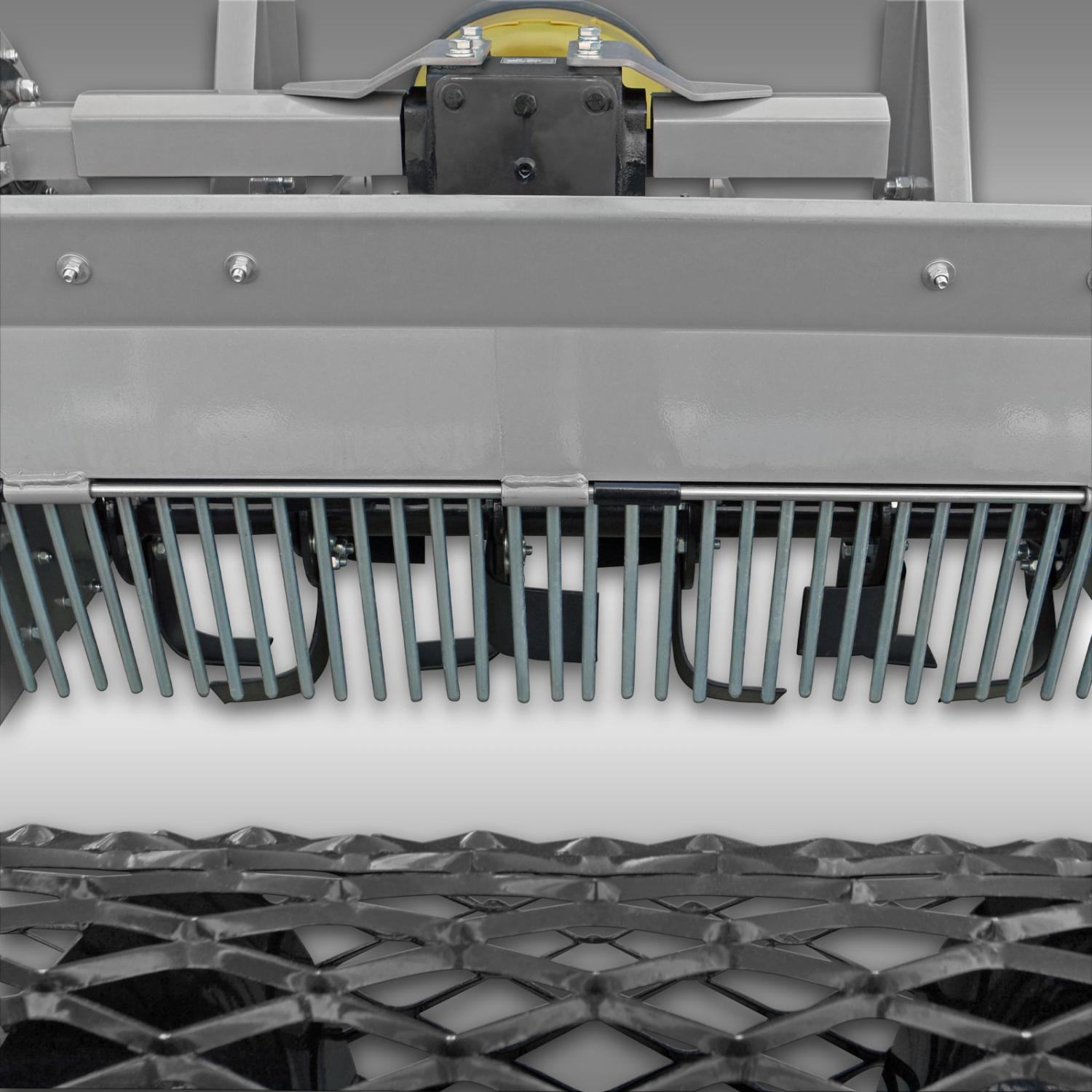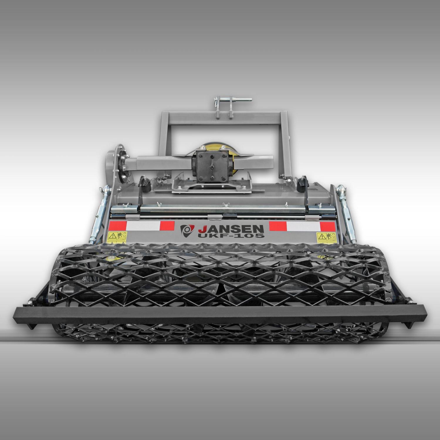 En av egenskaperna av den Jansen UKF-105 är dess integrerade gallervals. Denna vals säkerställer en förstklassig jordstruktur och en fin smulad såbädd som skapar idealiska förutsättningar för sådd. På grund av fräsaxelns motsatt rotationsriktning kastas stenar eller grova växtrester mot den mycket robusta valsen och separeras därmed från jorden. Resultatet: optimala förutsättningar för dina växters tillväxt.