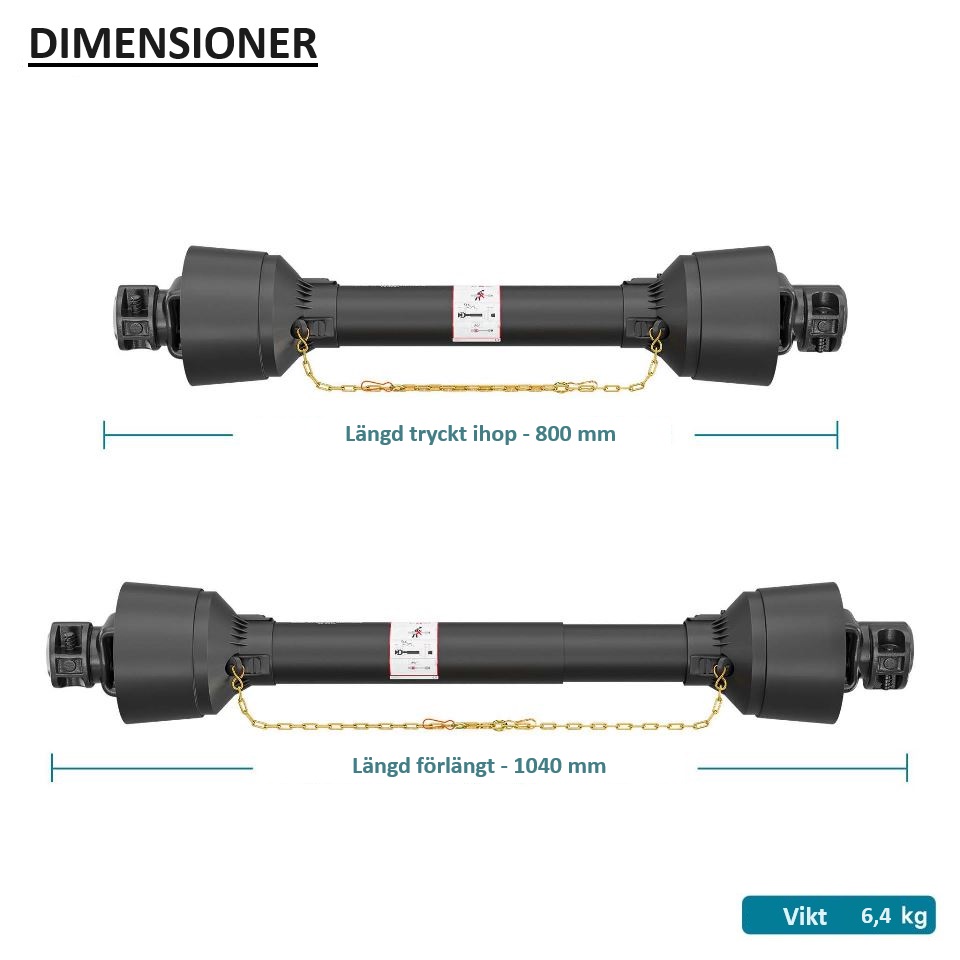 - Längd: 800–1040 mm, max. vridmoment 320 Nm