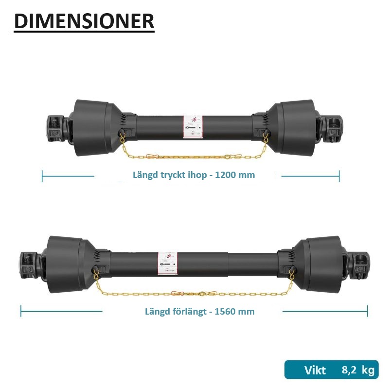 - Längd: 1200–1560 mm, max. vridmoment 320 Nm