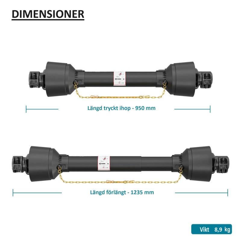 - Längd: 950–1235 mm, max vridmoment 320 Nm