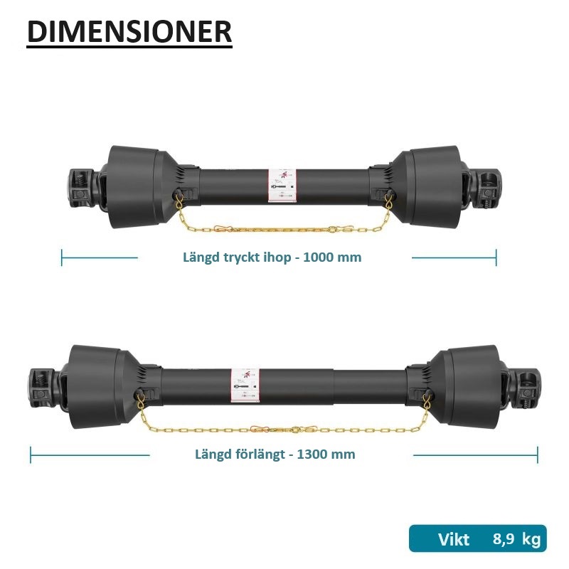 K-axel T2 1000-1300mm 270Nm 540 varv/min, 23kW (31HK), kardanaxel