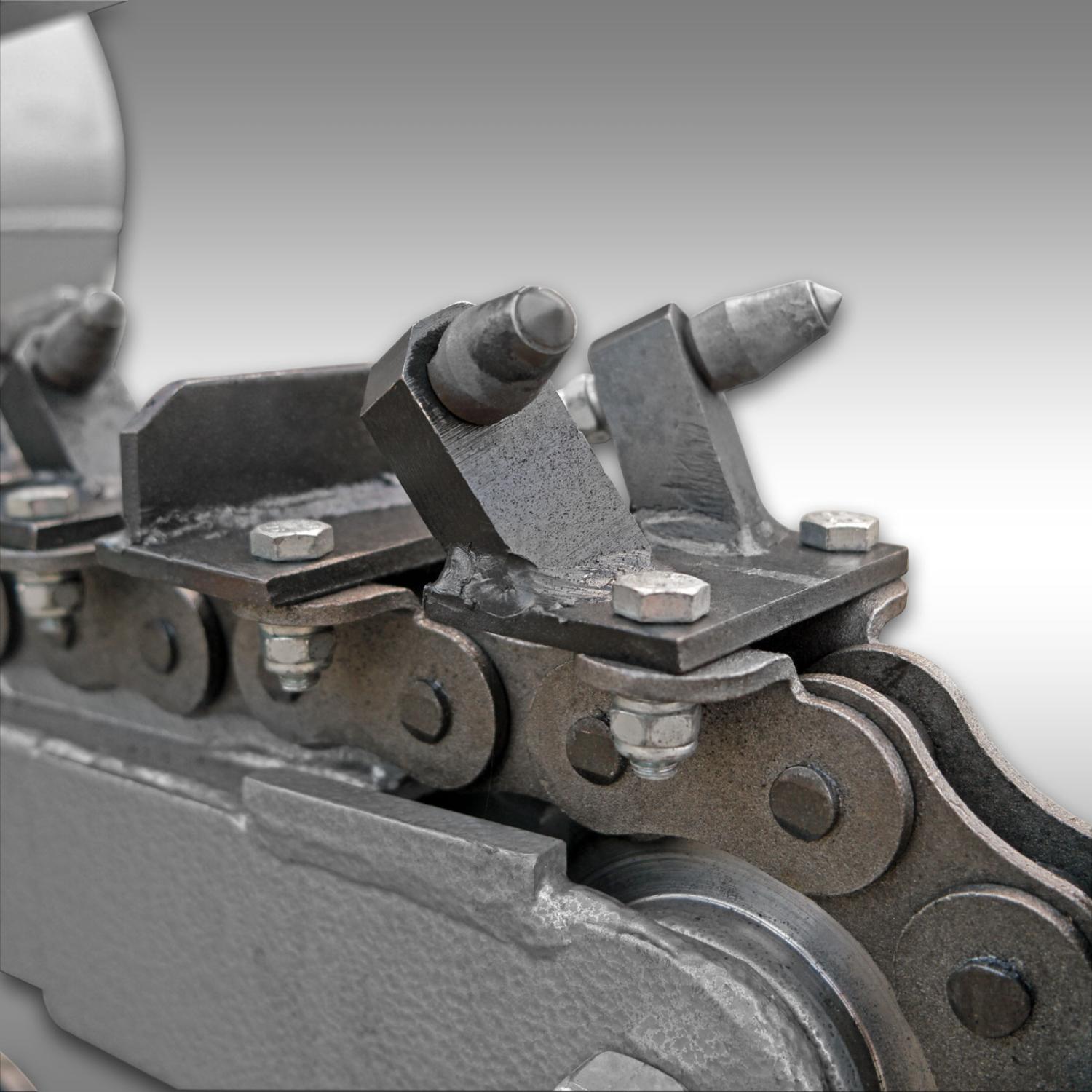 Viktig anmärkning om gravkedjan: Gravkedjan är en slitdel och undantas från garantin. Gravkedjan är gjord av hög kvalitet, men kan skadas vid svåra markförhållanden och naturligtvis också med större föremål, stenar eller trädrötter i marken. Det händer sällan, men det kan inte uteslutas. Eftersom vi inte känner till grundförhållandena kan vi därför inte ta något ansvar.