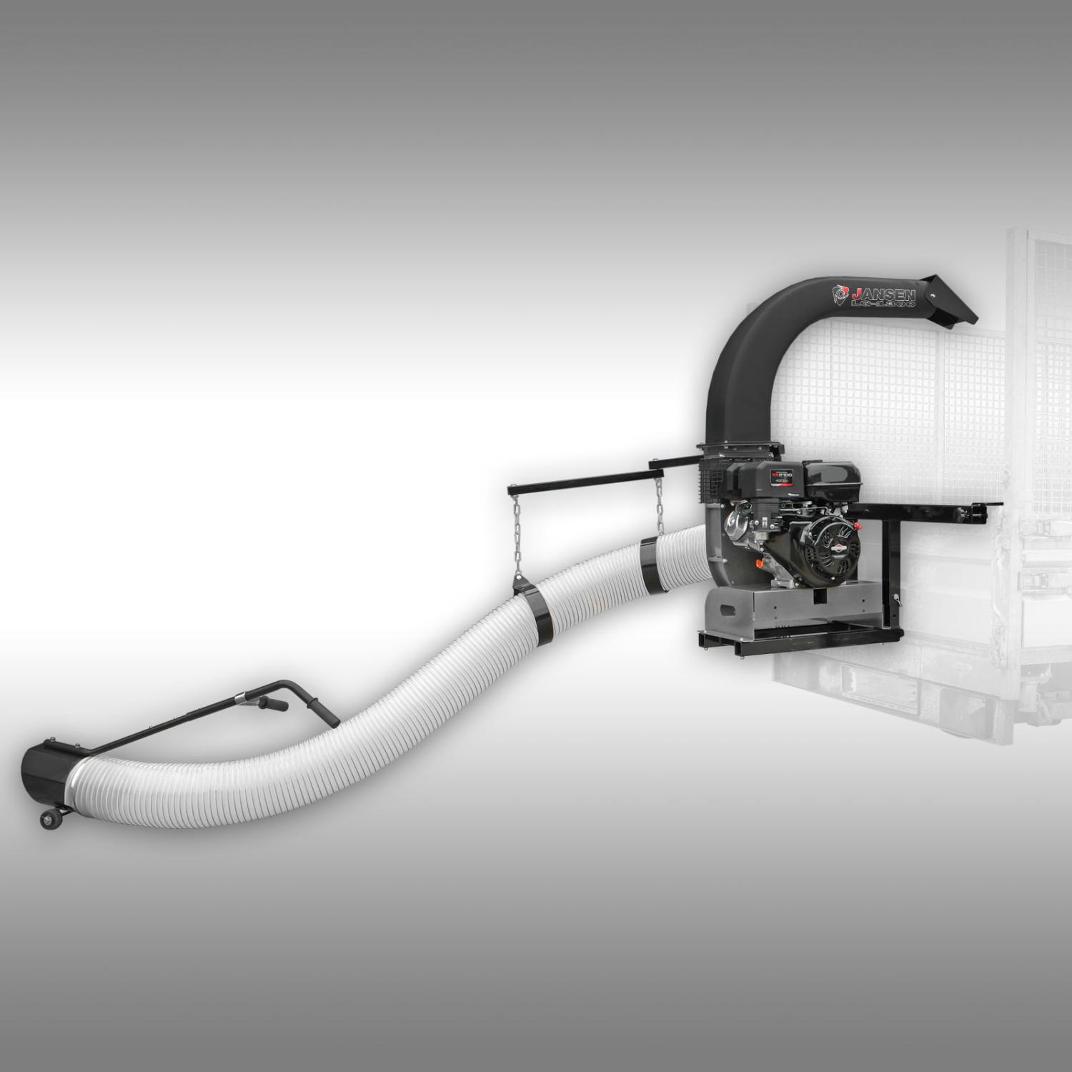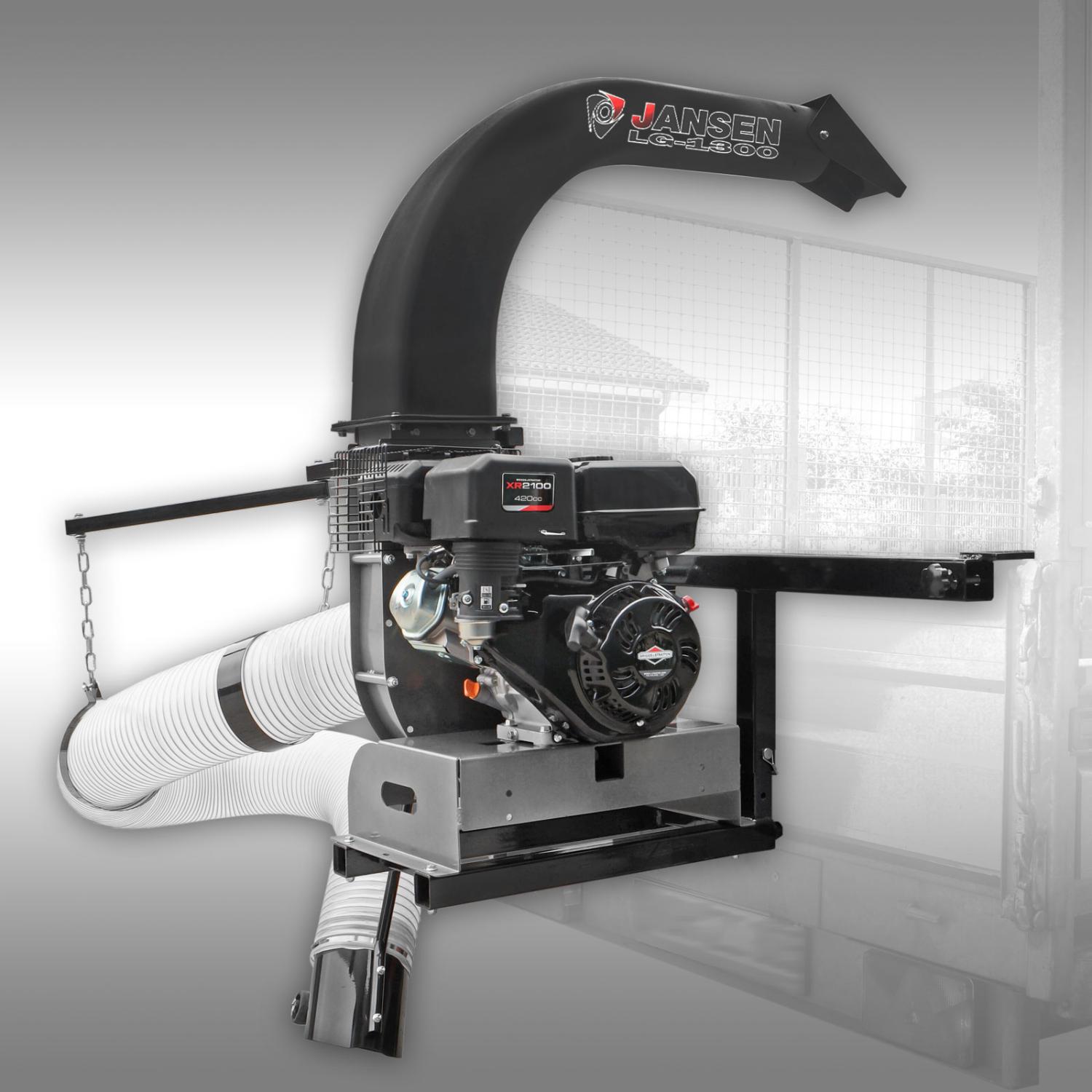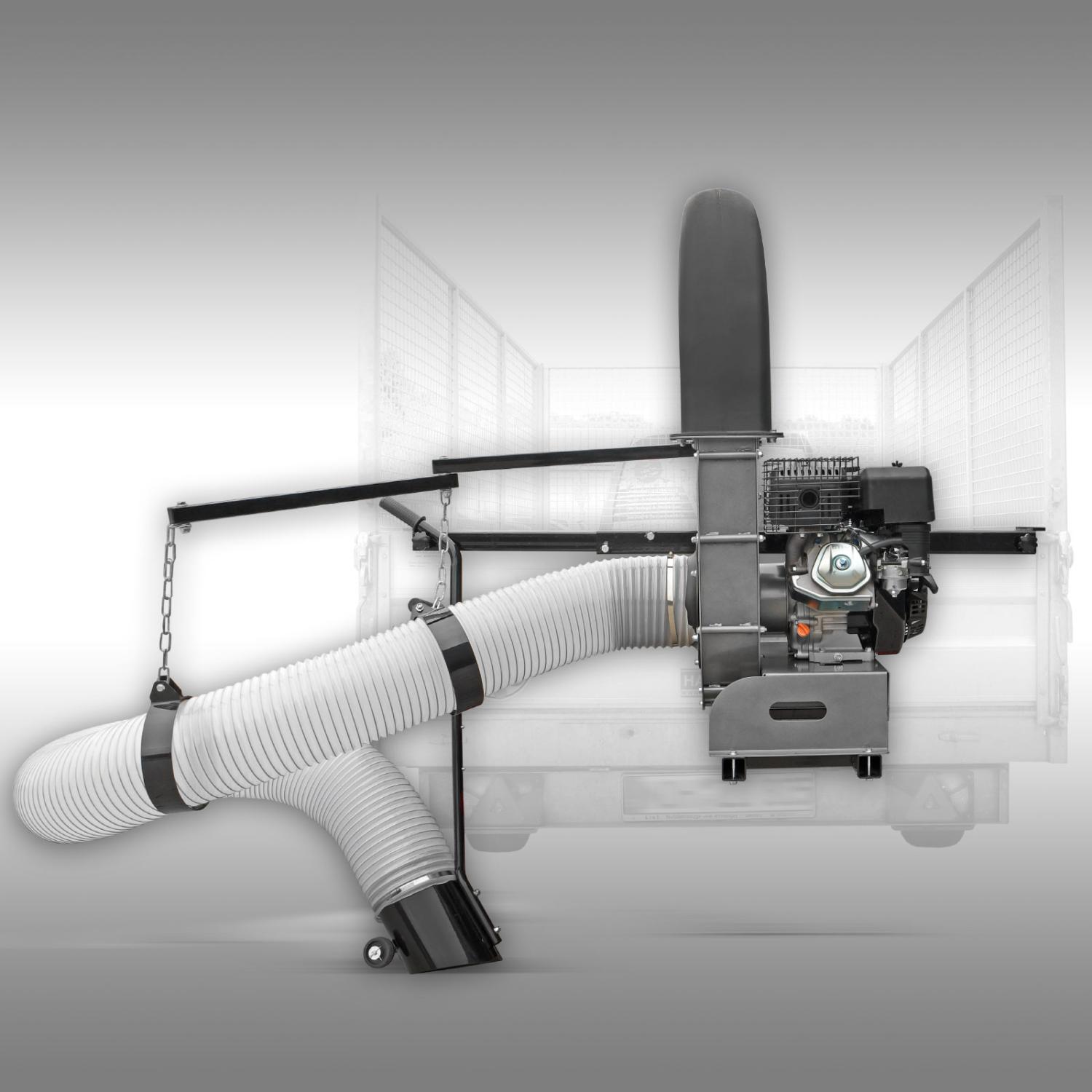 Vår LG-1300 lövblås är en kraftfull sugenhet inklusive monteringsram för montering på nästan alla fordon med lastyta och sidoväggar. Du kan använda den för att suga upp löv, gräs, papper och mycket mer på nolltid och slänga dem direkt på din trailer via utkastningsröret. Utkastningsröret kan vridas 90° med hjälp av 4 skruvar och har en utkastningsklaff för att styra luftflödet och kastriktningen. Tack vare utkastnings förlängningen som medföljer är högre släp inga problem.