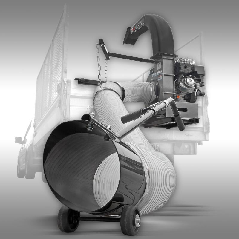 Lövblåsaren levereras som standard med en 3 m sugslang (20 cm diameter) med stabilt sugmunstycke inklusive rullar och handtag. Handslangen är universellt justerbar och stabiliseras av ett stödfäste, vilket gör hanteringen mycket enklare.