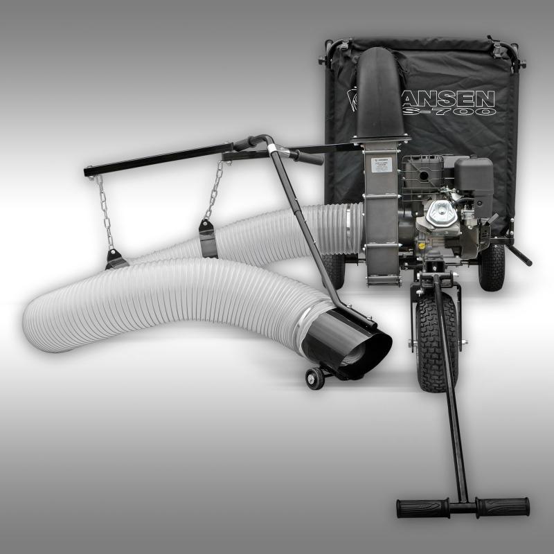 Tack vare sin användarvänlighet är LS-700 effektiv och universellt tillämplig. Den stabila basen och den låga tyngdpunkten garanterar enkel hantering trots dess ca 110 kg vikt. Tack vare pneumatiska däck och dragstång kan LS-700 enkelt dras för hand. Med bara några enkla steg kan du bygga om dragstången så att du kan fästa bladdammsugaren på ett dragfordon - t.ex. gårdstraktor eller fyrhjuling. Som standard är LS-700 utrustad med en uppsamlingspåse (ca 700 l volym) och en 3 meter lång sugslang (Ø 200 mm).