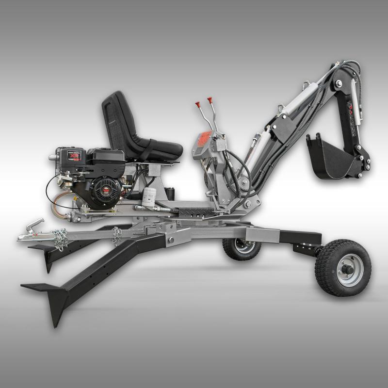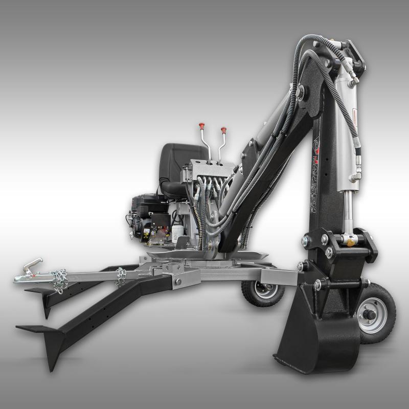 Den kraftfulla 10 HK bensinmotorn med elektrisk start och kraftfull hydraulik ger den kraft som krävs för att klara även de mest krävande uppgifterna. Jansen MB-360° har hydrauliska spakar som möjliggör exakt manövrering av grävmaskinens funktioner. Den intuitiva korskontrollen gör hanteringen enklare och ökar effektiviteten på byggarbetsplatsen. Vår MB-360° har en extra styrenhet som standard och därför en extra hydraulisk styrkrets på grävmaskinens arm. Du kan utöka ditt arbetsområde och till exempel använda en jordborr på denna grävmaskin.