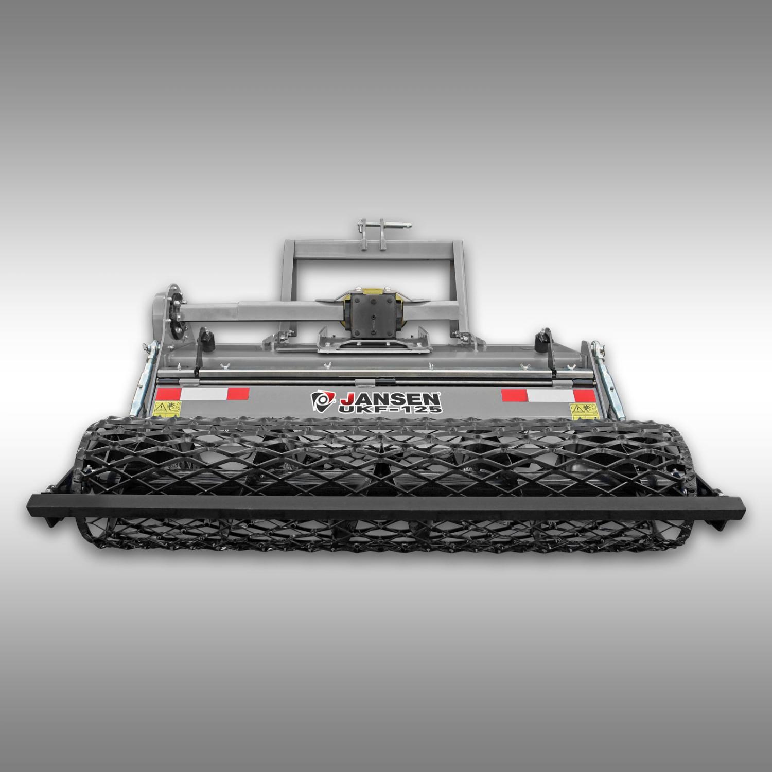 Oavsett om det gäller jordbruks- och åkerarbete, vingårdar, plantskolor, fruktträdgårdar eller trädgårdsodling – Jansen UKF-125 traktorfräs är ett oumbärligt verktyg för krävande landskapsarkitektur och är idealisk för kompakta och smalspåriga traktorer. Med sin effektiva prestanda och beprövade funktioner ger den utmärkta resultat vid jordbearbetning och odlings förberedning. Arbetsbredden är cirka 125 cm och jordbearbetningsdjupet är cirka 16 cm. Fräsen drivs av den medföljande kraftuttagsaxeln och fästs på din traktors trepunktskoppling (kategori I och II). Din traktor bör ha en minsta effekt på 26 hk.