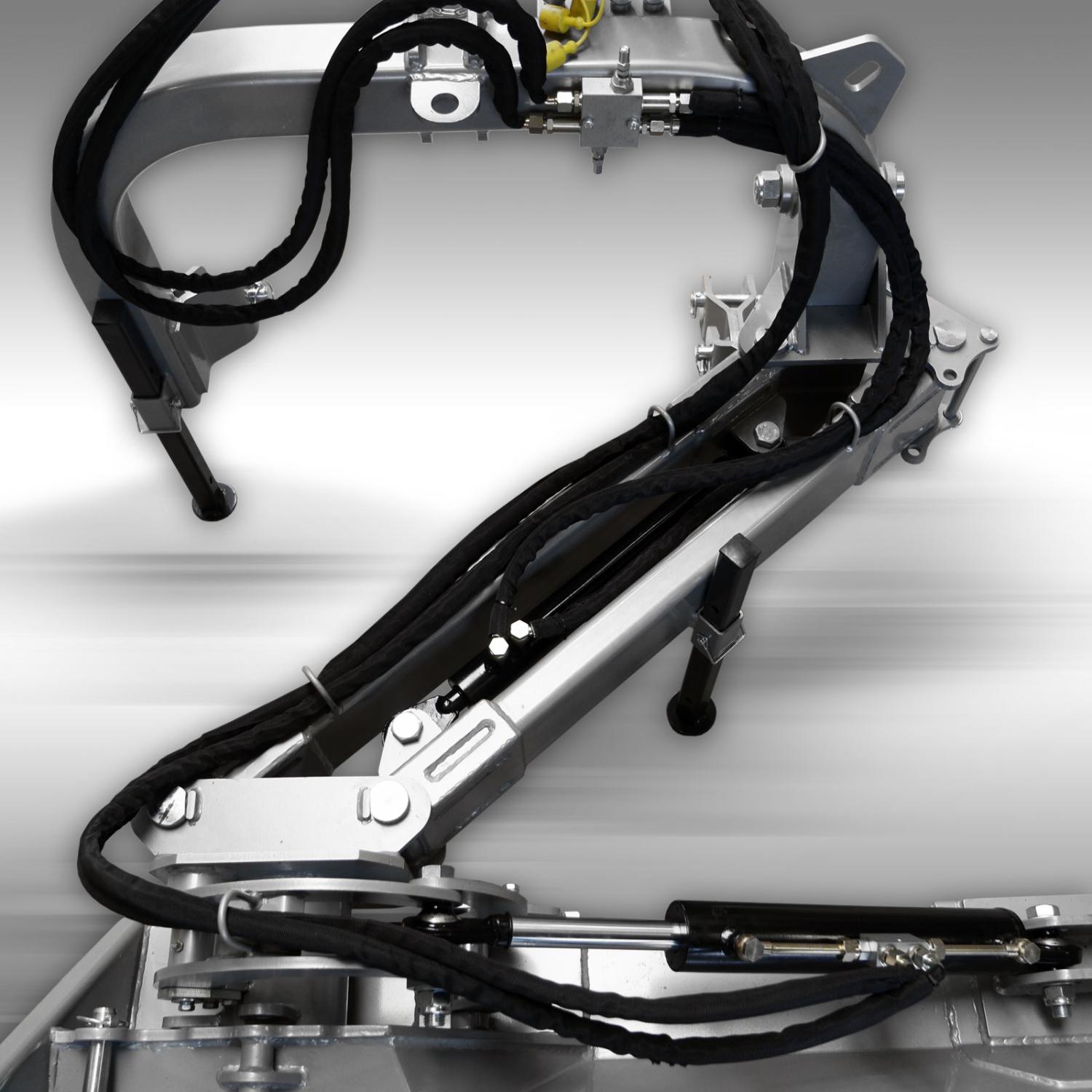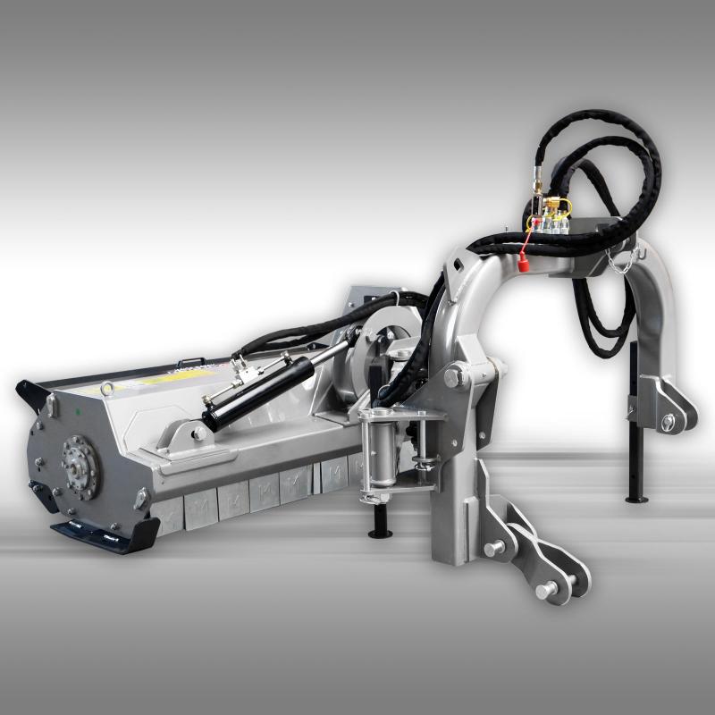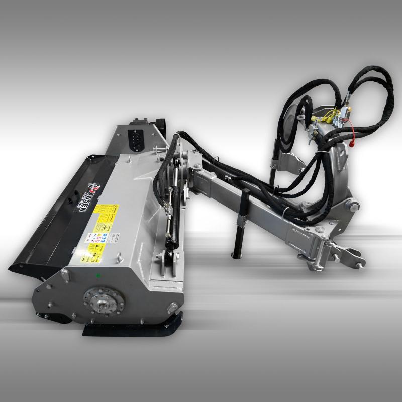 Denna modell har en klippbredd på 138 cm och körs via kraftöverföringsaxeln, som ingår i leveransen. Den kan flyttas till vänster och höger och du kan vinkla den (90° uppåt och 55° nedåt). För denna funktion behöver du två hydrauliska styrkretsar på din traktor, eftersom denna slaghack är utrustad med två dubbelverkande hydraulcylindrar för detta ändamål.