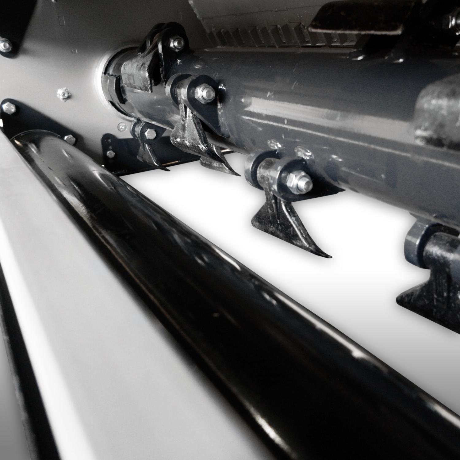 Klipphöjden kan justeras med hjälp av släden som är fästa på sidan. De 12 speciellt härdade, 1,2 kg hammarbladen, som är placerade på en dubbel spiral drivaxel, hackar materialet till ett minimum. Även mycket högt gräs, buskage eller halmliknande klipp är inga problem för denna gräsklippare!