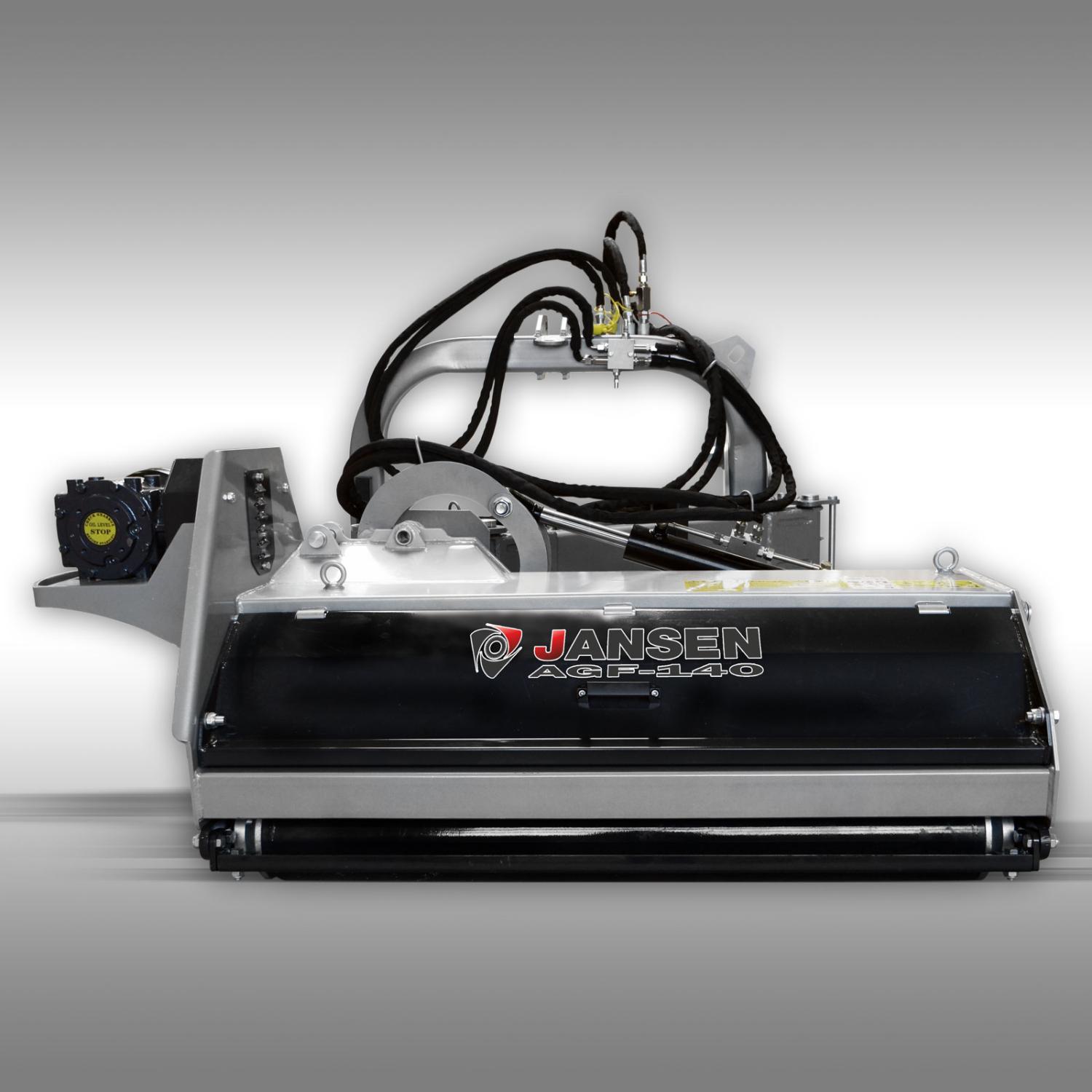 AGF-140 släntklippare har en tung bakrulle och en friläge. Galvaniserade lameller hängande på en pendel på klipparens framsida hindrar stenar etc. att fly.