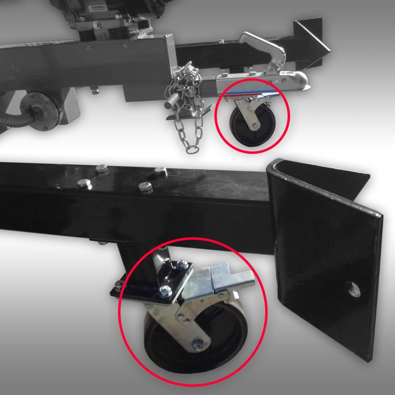 Transporthjul (set) för minigrävare MB-300 och MB-360, den kan enkelt skruvas fast i grävmaskinens stöd. Hål finns redan. Genom att rotera de två stöden 90° kan du växla från stödpositionen till rullläget. På detta sättet kan minigrävmaskinen flyttas smidigt korta sträckor, t.ex. till förvaringsplatsen.
