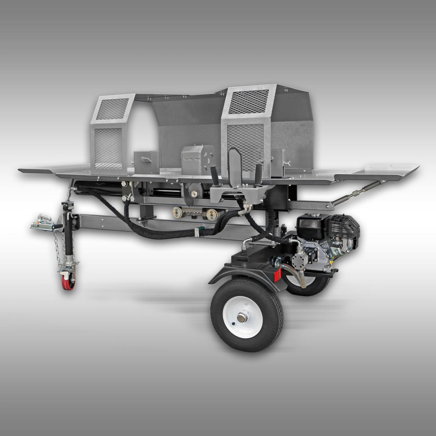 Jansen® HS-20DS55pro erbjuder inte bara enorm kraft utan också en välutformad konstruktion. Dess kompakta, horisontella design möjliggör ergonomisk användning och en stabil bas. Med en bredd på endast cirka 110 cm (inklusive arbetsbord) är vedklyven enkel att transportera – oavsett om den är på släpvagn eller med dragkrok för manövrering till arbetsplatsen.