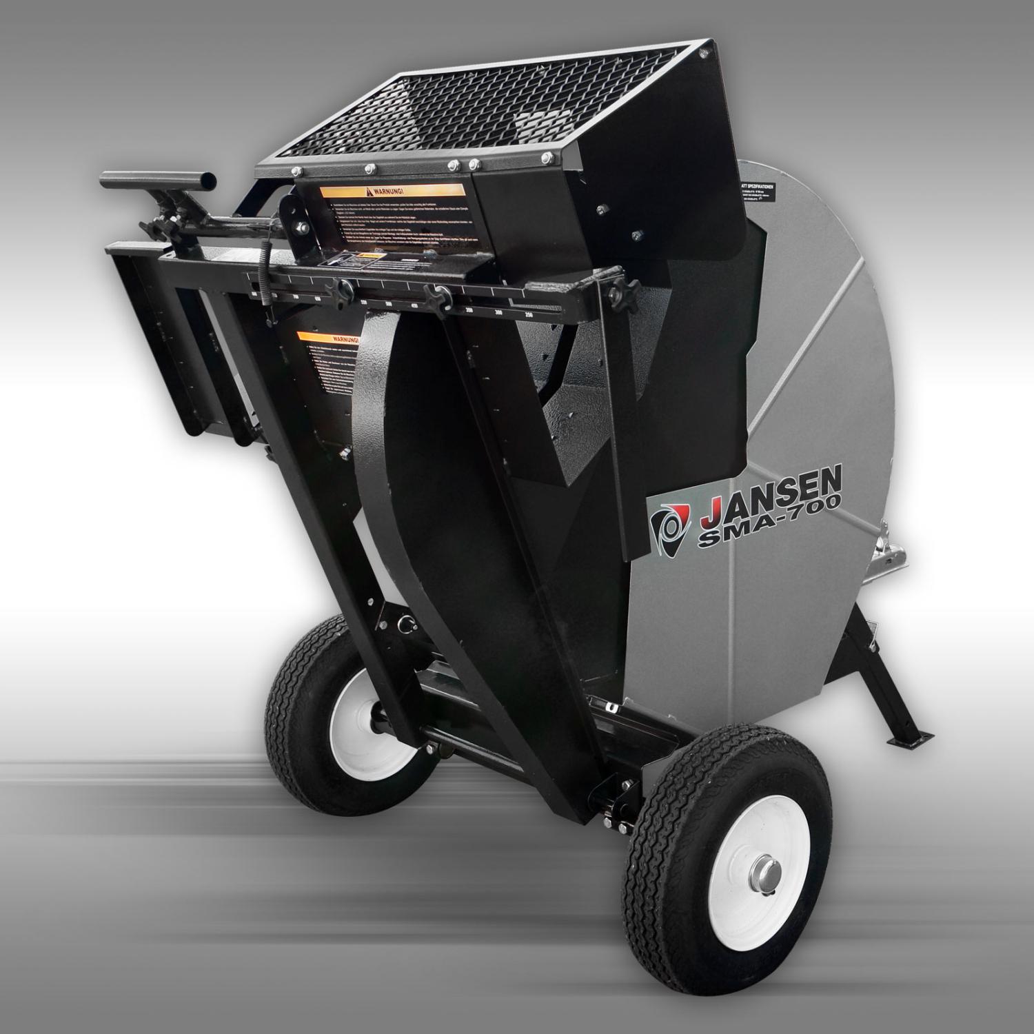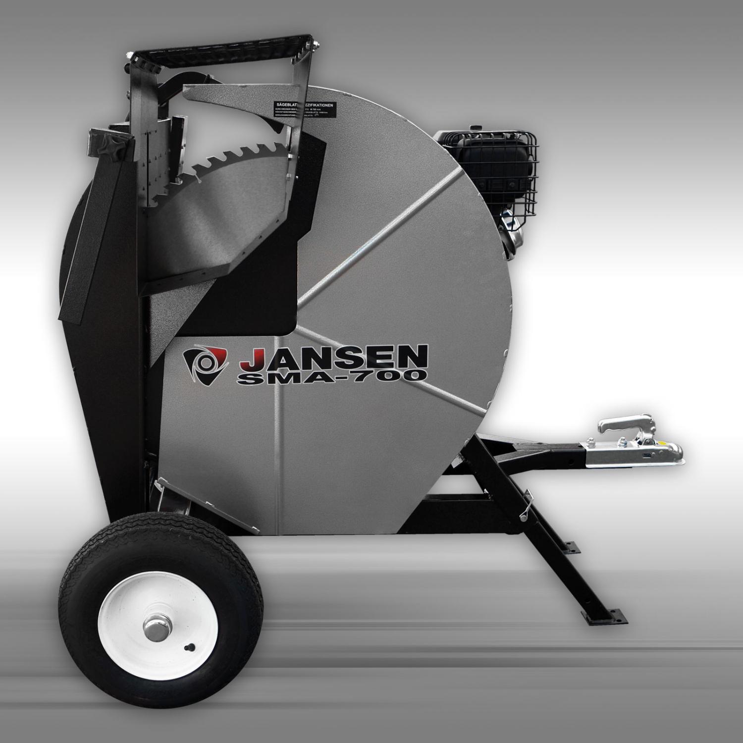 Vår senaste modell inom vedsågar är SMA-700 med en kraftfull 15 hk bensinmotor (Loncin G-420F) och ett 700 mm hårdmetallspetsat cirkelsågblad.